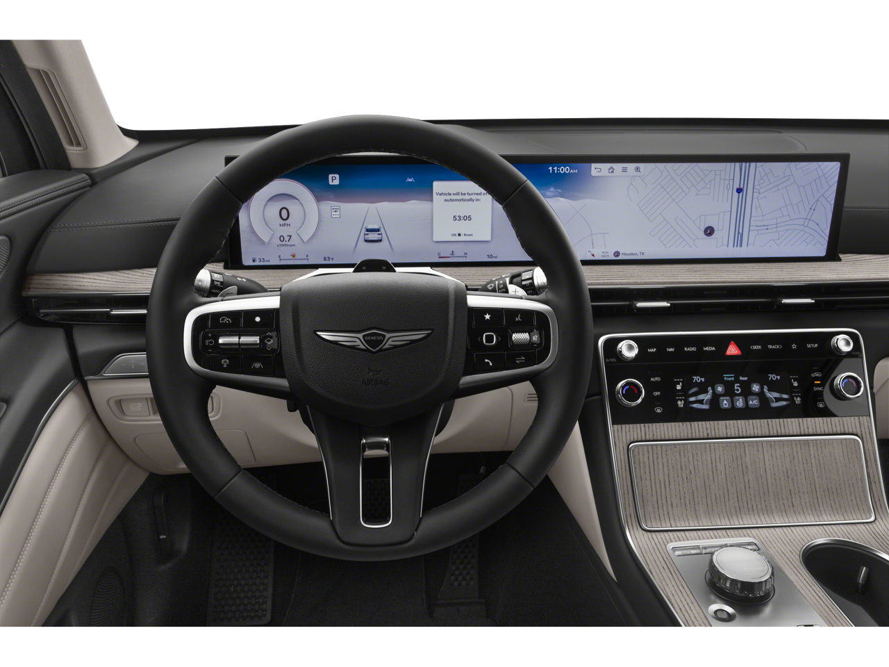 - Radio: AM/FM/HD Bang & Olufsen Sound System -inc: 1400 watts, 18 speakers, 14 channel amplifier, 27" integrated OLED instrument cluster and navigation system, SiriusXM Radio w/90-day subscription (not available in AK or HI), cloud connected platform (cloud profiles, connected routing, dynamic voice recognition, OTA updates), wireless Apple CarPlay, wireless Android Auto, Bluetooth® hands-free phone system w/audio streaming, wireless phone charger, Wi-Fi hotspot, steering wheel controls, USB and Genesis Connected Services