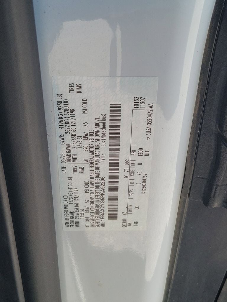Oxford White 2023 Ford Transit-350 XLT RWD 10-Speed Automatic with Overdrive EcoBoost 3.5L V6 GTDi DOHC 24V Twin Turbocharged