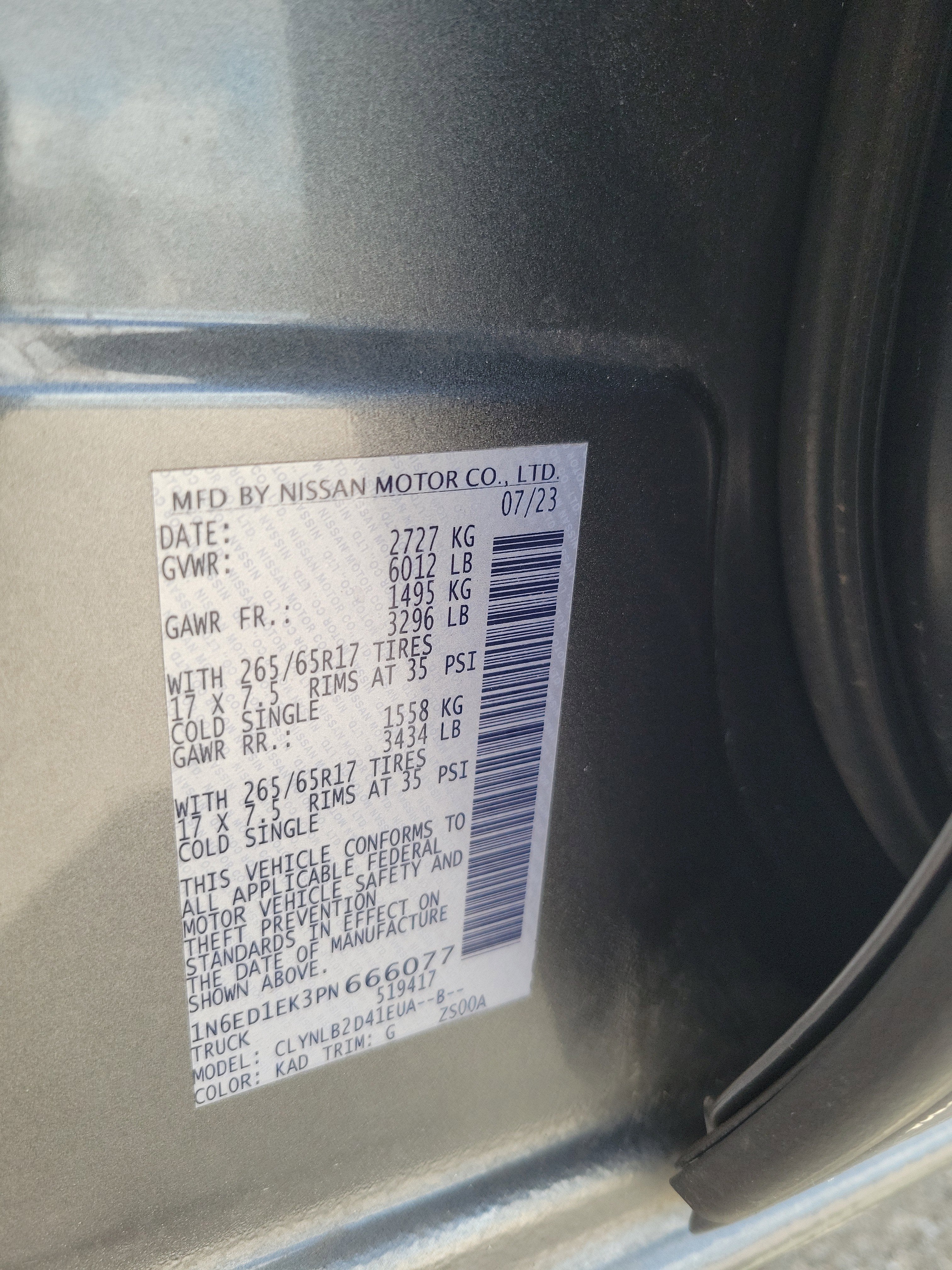 - Vehicle Name: Nissan Frontier