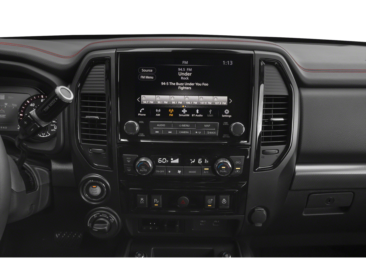- Radio: NissanConnect w/Navigation -inc: AM/FM/SiriusXM, Fender premium audio system w/12 speakers (including amp, underseat subwoofer, center speaker and front/rear tweeters), wireless Apple CarPlay, Android Auto, 9" touchscreen display, Wi-Fi hotspot, Nissan door-to door navigation w/3D building graphics and satellite imagery, connected navigation features including online POI search, over-the-air map updates, and online premium traffic information, SiriusXM Traffic, SiriusXM Travel Link (weather, fuel prices, movie listings, stock info, sports and parking), TomTom weather, 2 illuminated USB connections (1 type A, 1 type C), Bluetooth® hands-free phone system, streaming audio via Bluetooth®, hands-free text messaging assistant and HD radio