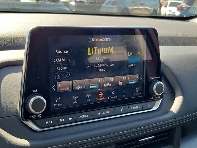 - Radio: AM/FM NissanConnect -inc: 6 speakers plus 2 tweeters, Apple CarPlay, Android Auto, 8" color touch screen display, Bluetooth®, 2 front USB type-C, Wi-Fi hotspot and NissanConnect Services powered by SiriusXM